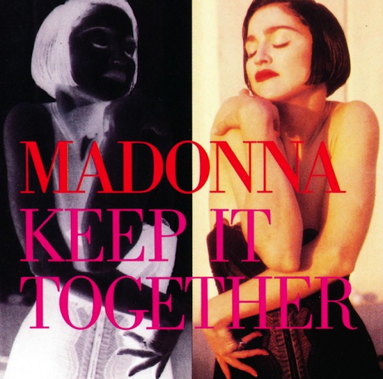 Written and produced by Madonna and Stephen Bray, the main inspiration behind Keep It Together was Madonna’s relationship with her family—whom she dearly missed after her divorce from actor Sean Penn. It became the final Madonna single release to feature a collaboration with Bray—a partnership that had begun romantically when Madonna & Stephen were college students at the University of Michigan, Madonna later persuaded Bray to join her in New York where he became the drummer for her band, Emmy. The two went on to write and produce some of Madonna’s most memorable 80’s hits. A final collaboration between the pair, Get Over, was reworked by Madonna and Shep Pettibone for possible inclusion as one of the new tracks on The Immaculate Collection, but was instead given to Warner Bros artist Nick Scotti to record in 1991.