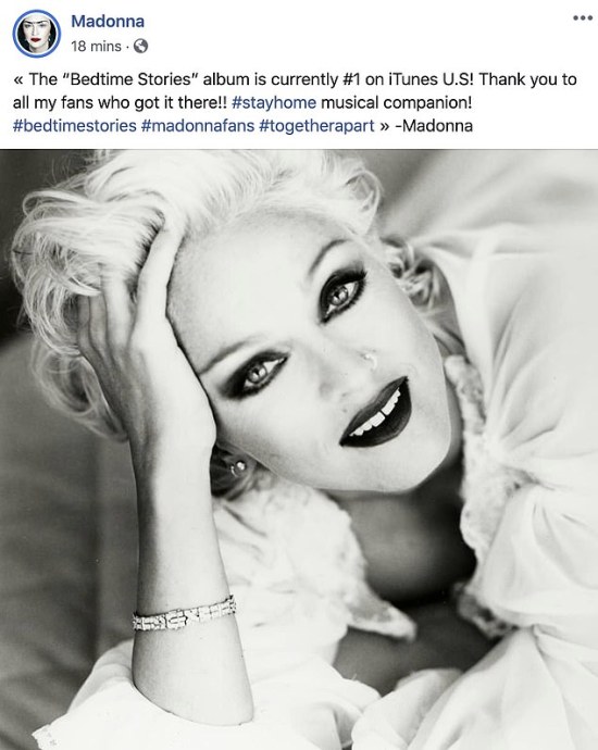 On April 30 2020, Madonna’s 1994 Bedtime Stories album topped the U.S. iTunes Albums Chart after her fans kicked of th #JusticeForBedtimeStories campaign.