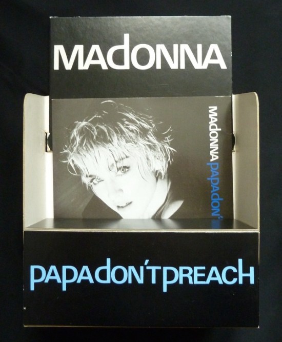 Pictured above is the promotional countertop stand used at retail to display and sell the 7″ single for Papa Don’t Preach.