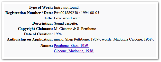 After recording a handful of demos with Pettibone, Madonna decided to shift musical directions. While some of Madonna’s lyrics from the Pettibone sessions would be reworked into songs that would appear on Bedtime Stories, the excellent Love Won’t Wait remained shelved until it was submitted to Gary Barlow’s manager for consideration.