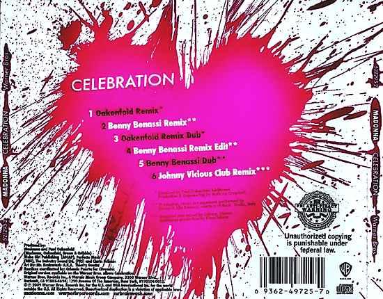 The remixes by Benny Benassi in particular were so well received that Madonna chose to use his version for the song’s music video instead of the Oakenfold produced album version. During her 2012 MDNA Tour, Benassi’s remix of Celebration was featured again when it was used for the show’s closing number.