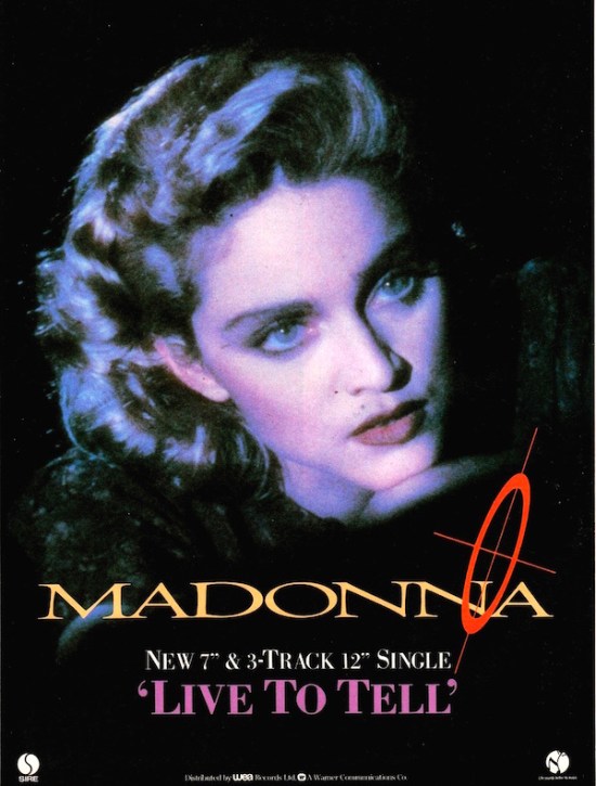 Given the song’s dark undercurrents and unresolved narrative, it was a bold choice for a single release. It marked a dramatic shift from the yearning love song, Crazy For You – her only other ballad to have been issued as a single at the time. But any radio programmers who were hesitant to consider Madonna as a serious artist simply couldn’t deny the artistry of the song and nor could record buyers, with the combined support sending Live To Tell straight to the top of the pop charts.