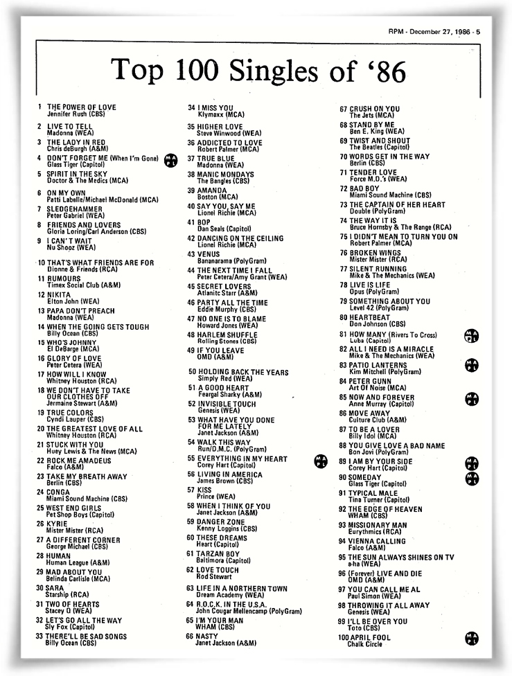 Live To Tell was Madonna’s third #1 single on the Billboard Hot 100, and her first #1 on the Adult Contemporary chart, where it would reign for three weeks.