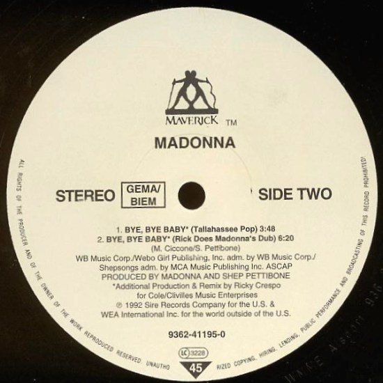 Bye Bye Baby was written by Madonna, Shep Pettibone and Anthony Shimkin and was produced by Madonna and Shep.