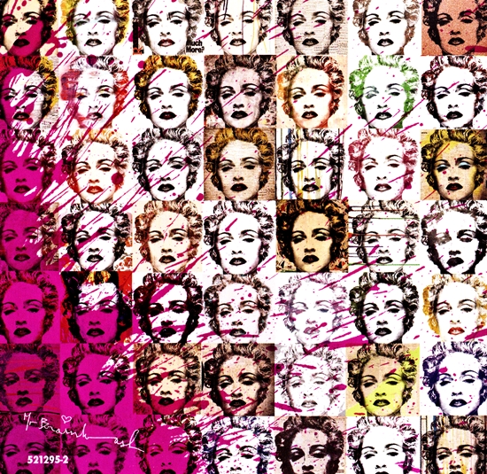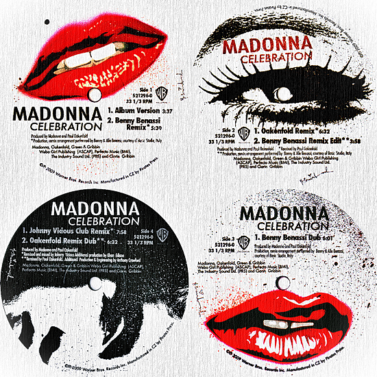 The cover for Celebration: The Video Collection was created by street pop artist Mr. Brainwash who is best known for “throwing modern cultural icons into a blender and turning it up to eleven”.