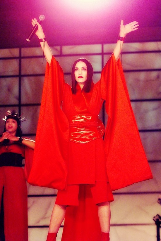 It was during rehearsals for the 1989 VMA performance that Niki Haris brought voguing to Madonna’s attention, and stylized poses were then fittingly incorporated into the performance’s choreography. While the performance is relatively simple compared to her numerous VMA performances in the years that followed, this puts the focus on the trio’s excellent live vocals and kick-ass choreography (keeping in mind that vocally, Express Yourself is quite a workout even without the dancing!). I consider this a great example of how sometimes less is more, and I would definitely consider this among her best awards show performances.