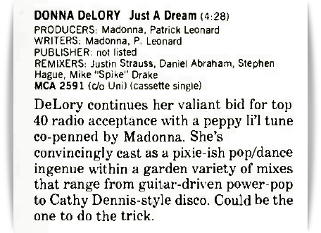 On March 9 1993, Madonna’s longtime backup singer & dancer, Donna De Lory, released the second single from her self-titled debut album. Just A Dream was written & produced by Madonna & Patrick Leonard and also features backing vocals from Madonna.
