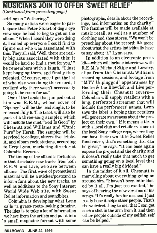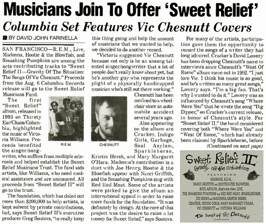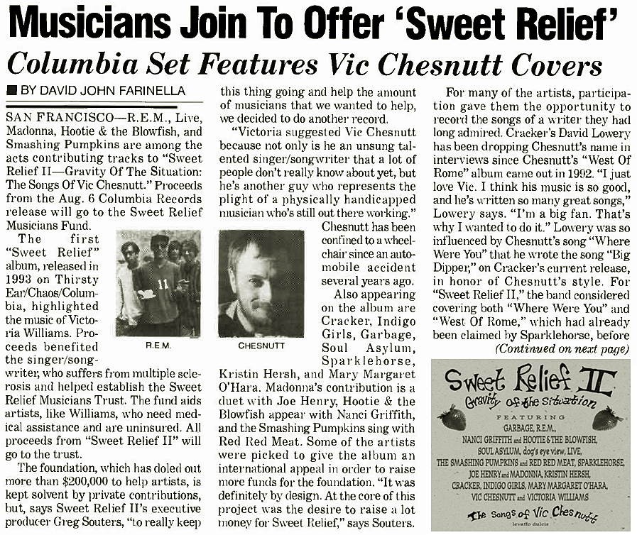 On June 22 1996, Billboard magazine revealed details for the benefit album, Sweet Relief II: Gravity Of The Situation – The Songs Of Vic Chesnutt. The benefit album featured Madonna’s duet with her brother-in-law, Joe Henry, titled Guilty By Association.