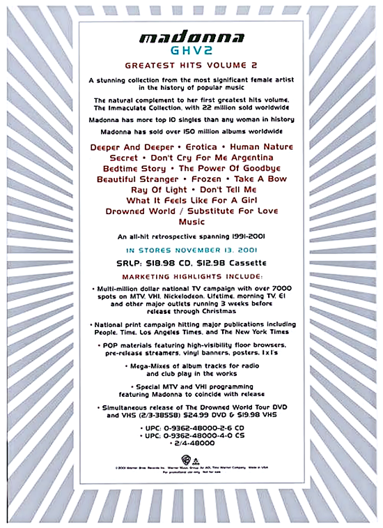 On December 12 2001, Madonna participated in a MSN Live Chat, to promote GHV2 (Greatest Hits Volume 2), which was released on November 12.