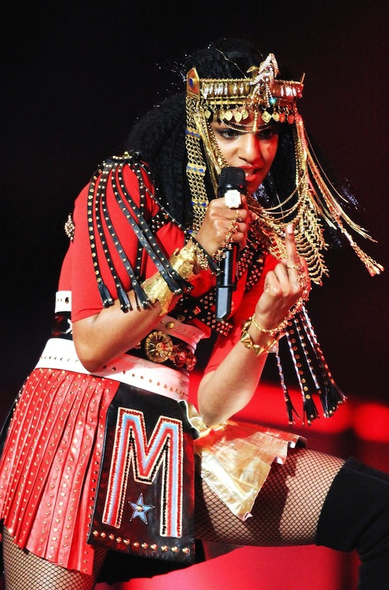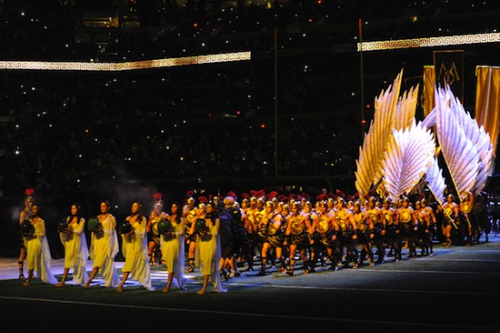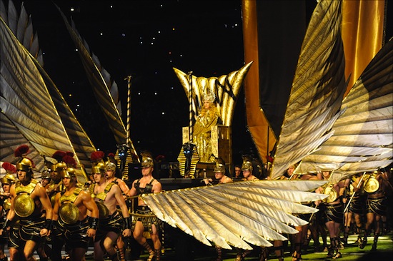 A year after the halftime show embraced its pop sensibilities with the Black-Eyed Peas, Madonna arrived as a Greek goddess on a giant litter carried by a legion of Spartan soldiers, showing all the kids exactly how it’s done. There was so much on the LED-lit stage at any given time: From the swirling dancers and the gospel choir to the slack-line performer, it was almost too much. Madonna offered new arrangements of her old songs, like a drum-corps version of “Open Your Heart” sung with Cee Lo Green and an LMFAO mashup of “Music” with “Party Rock Anthem.” While she loses points for devoting significant time to the lackluster single “Give Me All Your Luvin,” at least that featured Nicki Minaj and a bird-flipping MIA. Madonna successfully moved through several modes in rapid succession, collaborated with other big artists, and made it all look effortless, as if being at the swirling center of 200 performers is what she does every Tuesday. Maybe because it is.