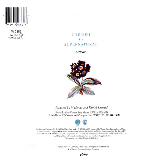 Cherish was Madonna’s third single to top the A.C. chart, following the 1986 ballad hit Live To Tell (3 weeks at #1) and 1987’s La Isla Bonita (also 1 week at #1).