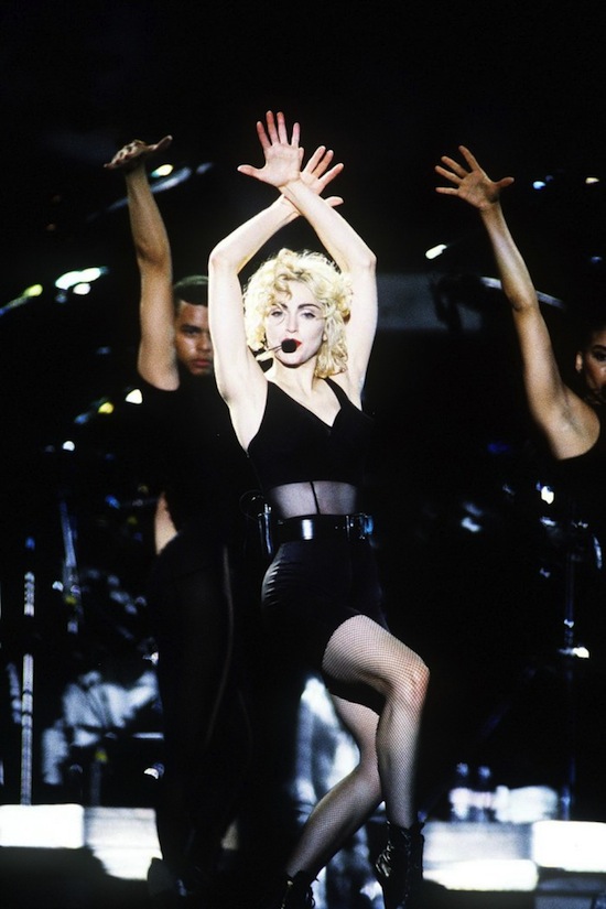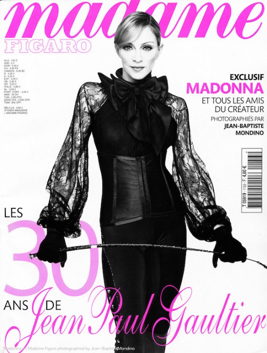 On October 15 1994, newswires shared photos of Madonna participating in Jean-Paul Gaultier’s spring/summer 1995 ready-to-wear collection fashion show in Paris, France (the show took place October 14). The show focused on 30’s, 40’s and 50’s fashion.