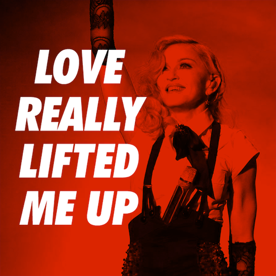 Armani hooked me up! My beautiful cape was tied too tight! But nothing can stop me and love really lifted me up! Thanks for your good wishes! I’m fine! ‪#‎livingforlove‬” -Madonna