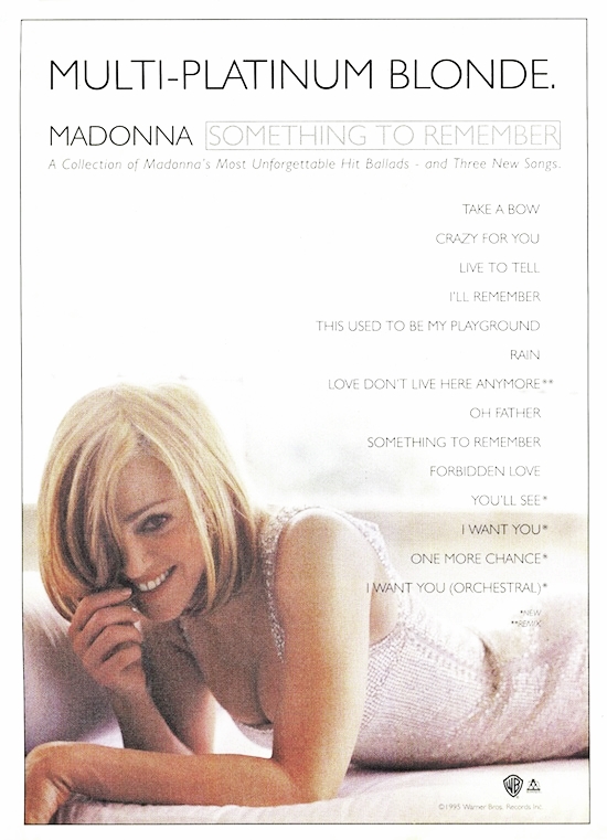 On November 7 1995, Madonna’s Something To Remember greatest ballad hits collection was released. The collection was released on different dates in different markets.