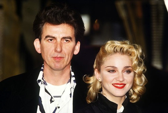 On March 6 1986, Madonna and George Harrison held a press conference at Kensington Roof Gardens, London, England to discuss the filming of Shanghai Surprise.