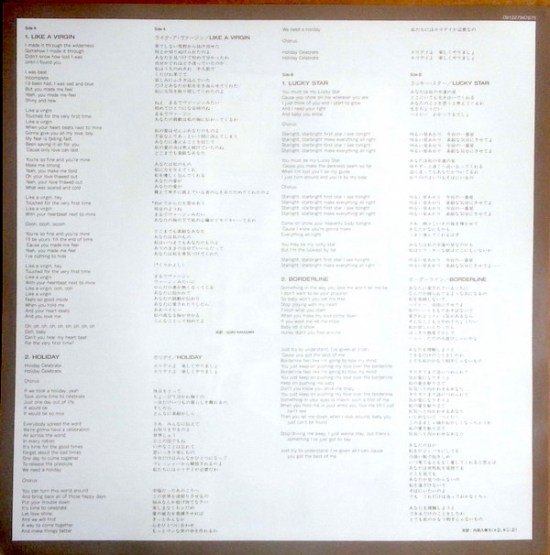 Although three of the include singles (Holiday, Lucky Star and Borderline) had been released before, Like A Virgin would not be released as a single until November 6 1984.