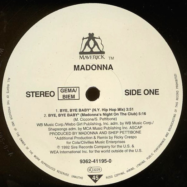 One notable change that did occur in these final recording sessions was Madonna’s decision to swap her original lyrics for the song Goodbye To Innocence (which had gone through various incarnations in an attempt to keep the track off the cutting room floor) with the lyrics of the torch classic, Fever. An earlier arrangement of Goodbye To Innocence with lyrics intact was later featured on the pro-choice compilation album, Just Say Roe, while a dub version of the same arrangement was retitled Up Down Suite when it appeared as a b-side on the Rain maxi-single. Another rough demo of the same track (streaming above), which is referred to as the “Straight Pass” mix on its original submission for copyright registration (which indicates that mixing of the track had not been finalized and that it is not mastered), leaked to file sharing services in February, 2008.