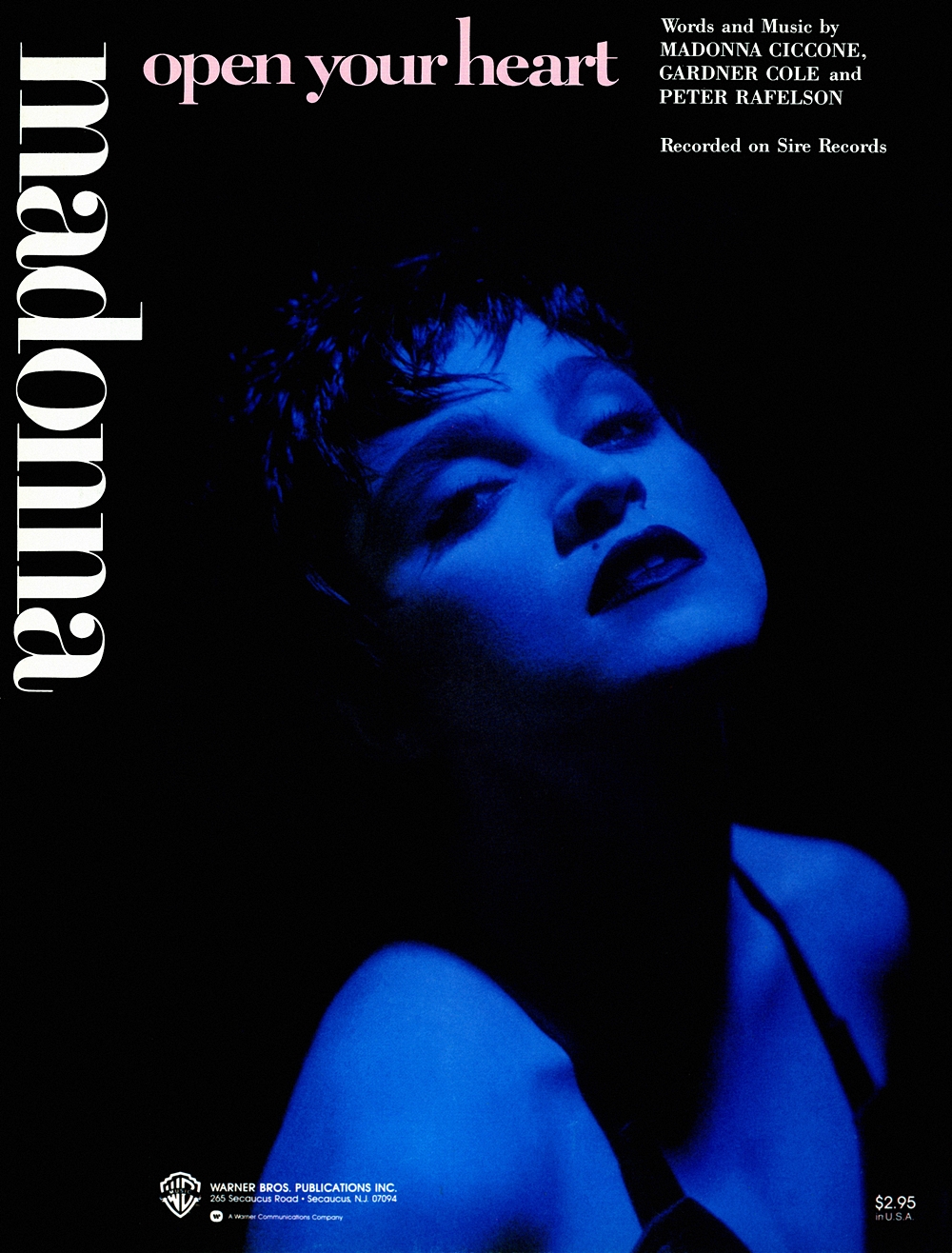 On December 12 1986, Open Your Heart was released in North America as the fourth single from True Blue. The song was written by Madonna, Gardner Cole & Peter Rafelson and produced by Madonna & Patrick Leonard.